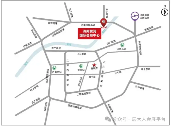 ①地铁1号线—地铁2号线—K905路—济南黄河国际会展中心