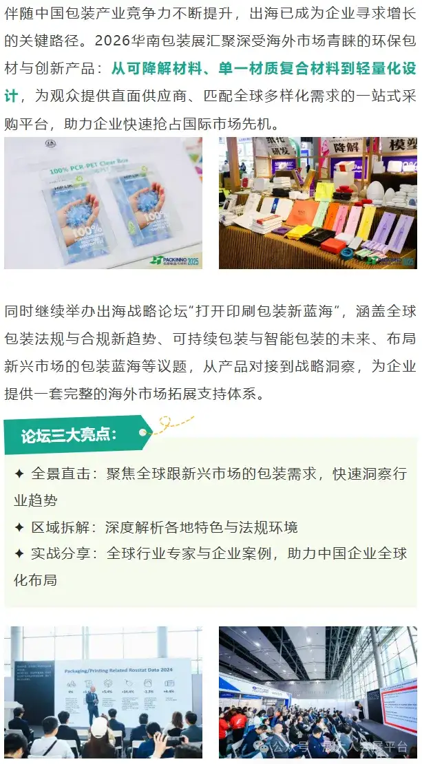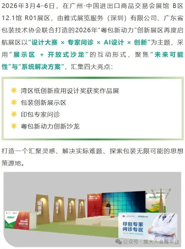 作为华南地区包装行业开年重磅大展,本次盛会汇聚全产业链前沿科技、创新解决方案与行业前瞻趋势,搭建上下游协同对接的核心平台,以硬核实力赋能包装产业高质量增长,共绘行业未来发展新蓝图。
