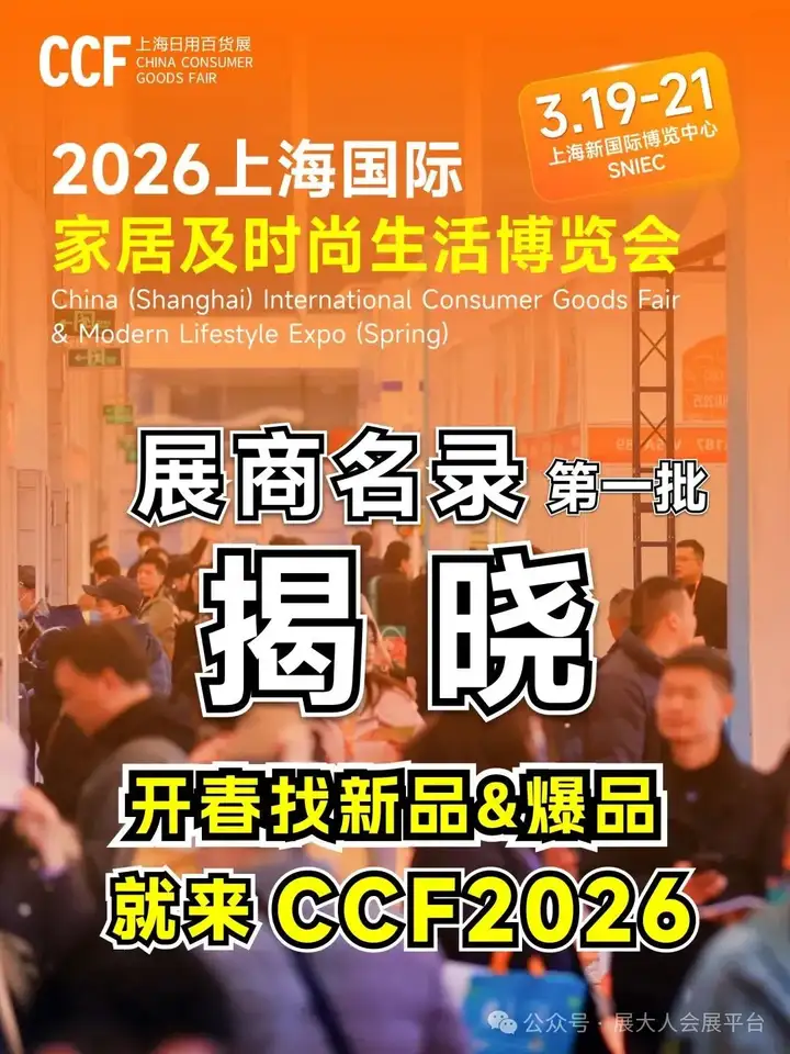 开年选品看上海,家居百货看 CCF!2026 CCF上海国际家居及时尚生活博览会,将于3月19-21日在上海新国际博览中心盛大举办!汇聚家居日用、时尚生活、百货潮品等全品类优质资源,首批优质展商已重磅亮相,品牌阵容强大,商机一触即发!