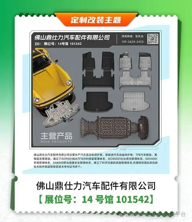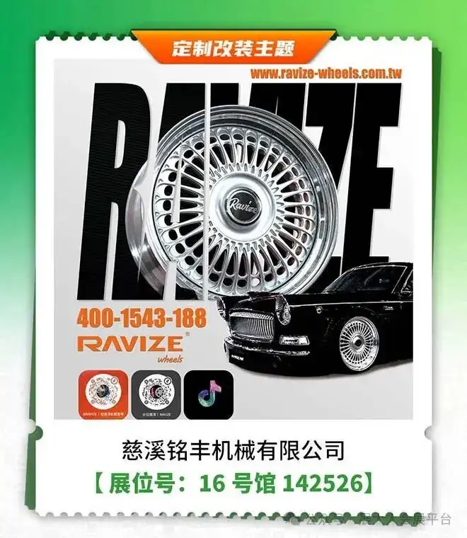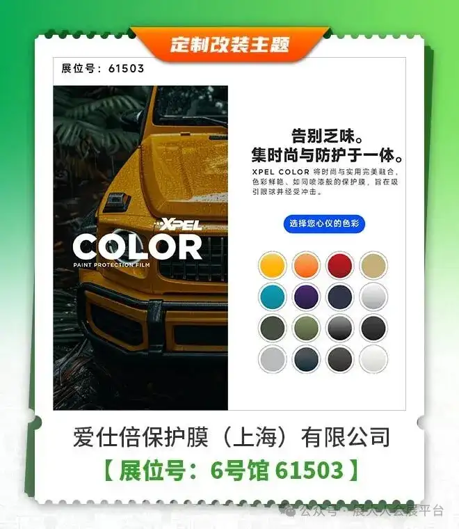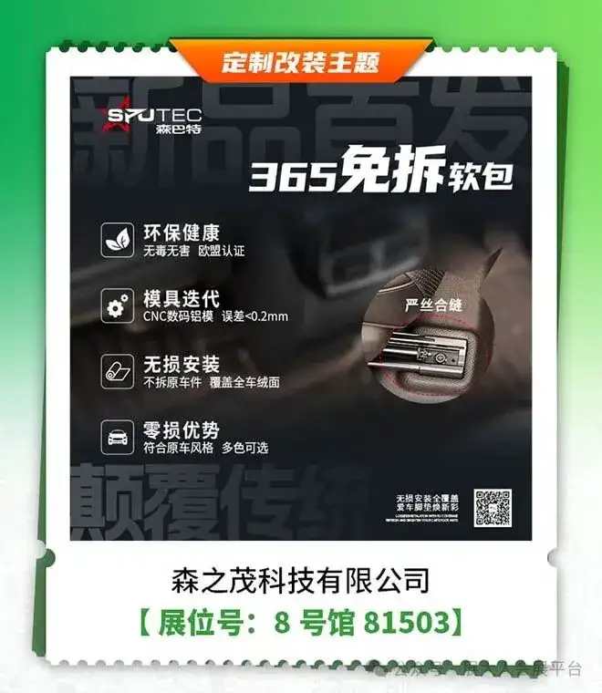 同时该主题展区还有5400余家知名改装品牌,聚焦汽车个性化升级热门趋势,品类覆盖:汽车内外改装升级、轮胎轮毂、性能部件、赛事文化、越野改装、汽车电子、汽车影音、汽车全膜、内饰精品、电商连锁等品类,全方位展示年度汽车改装新生态。
