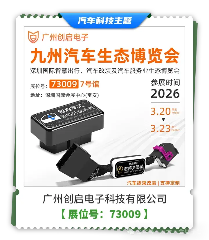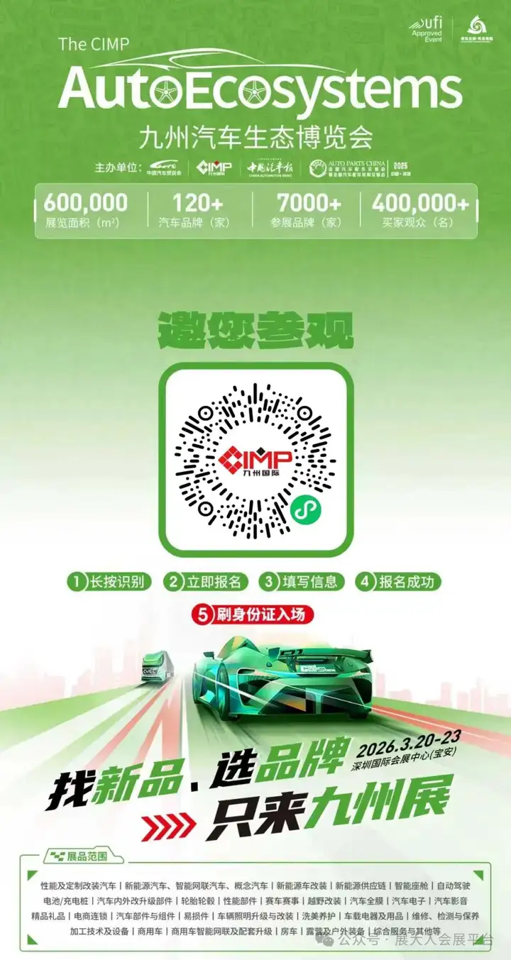 2026 九州汽车生态博览会(九州展),将于3月20–23日在深圳国际会展中心(宝安)盛大启幕。作为全球首个覆盖乘用车与商用车的全产业链生态平台,展会以60万㎡超大规模,汇聚120+整车品牌、5400+定制改装品牌、300+汽车科技企业、600+商用车配套品牌、700+汽车零部件品牌,集中发布1000+款年度新车型与20000+款新产品、新技术、新模式、新项目,是行业找新品、拓人脉、看趋势、链工厂、抓商机、贸易全球的重要窗口,海量新品率先曝光!