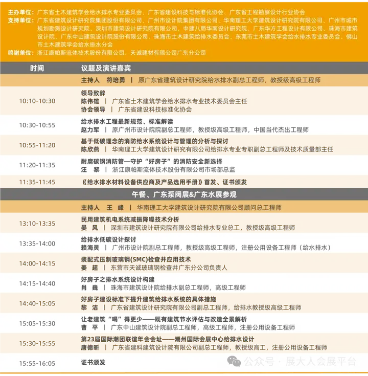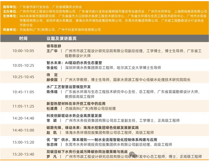 展会现场同期10+场高规格专业会议,汇聚权威专家、行业大咖与标杆企业代表,覆盖建筑给排水、智慧水务、工业节水减污、城镇水务技术发展、智慧水利与水生态建设、非常规水利用、石化/新能源废水处理、造纸行业/纺织园区节水减污、超纯水应用等热点议题,从政策解读到技术落地,从趋势预判到案例分享,全方位为你答疑解惑、指路领航。