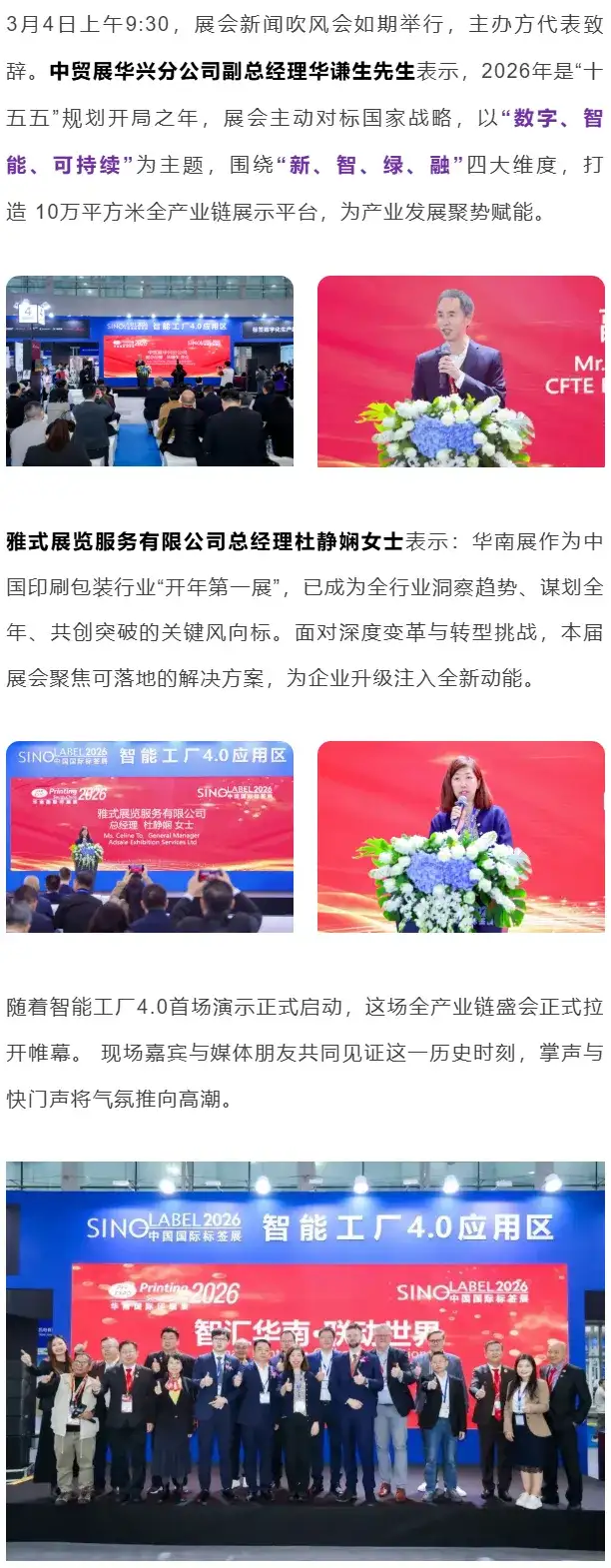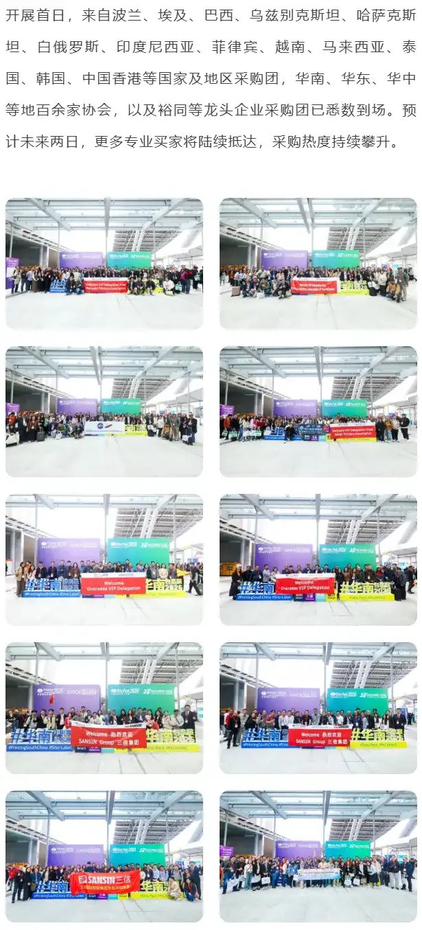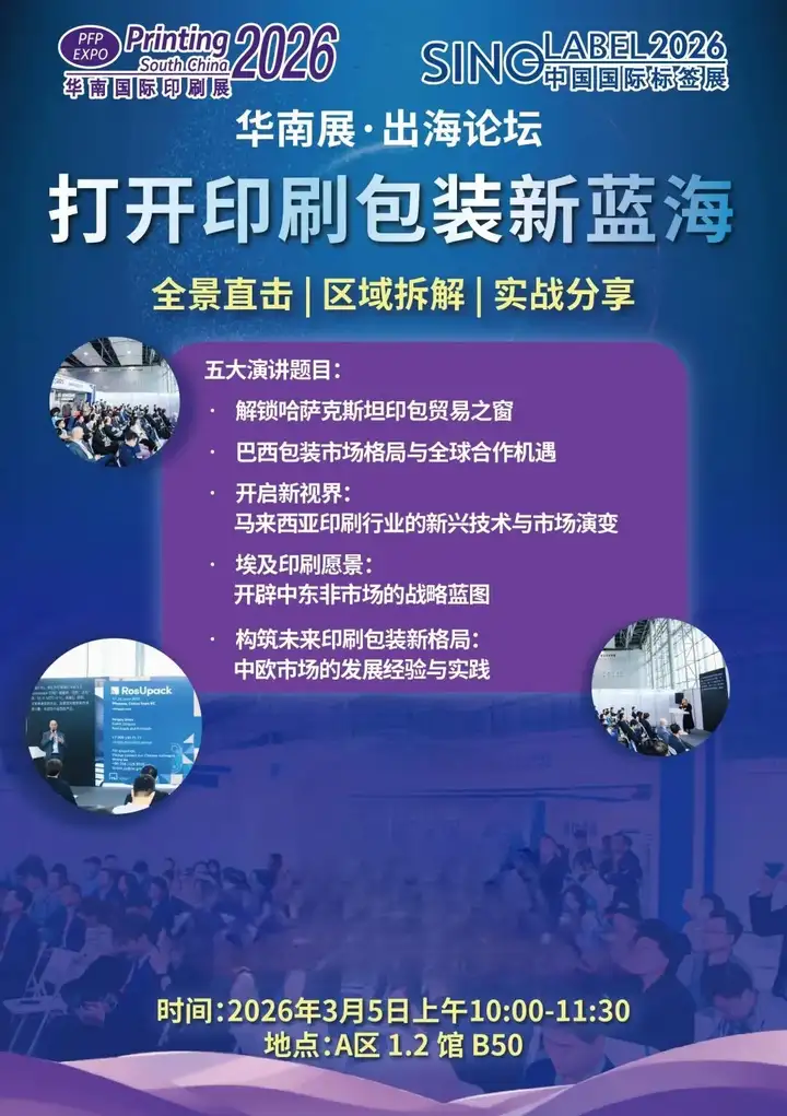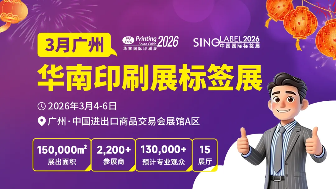 2026年3月4日,第三十二届华南国际印刷工业展览会暨 2026 中国国际标签印刷技术展览会在广州・中国进出口商品交易会展馆A区隆重开幕!作为印刷包装全产业链开年首展,本届展会以10万平方米超大规模、2200余家优质展商的强大阵容,汇聚全球行业精英与专业买家,现场人气高涨、洽谈热烈,奏响行业向新、向质、向强发展的时代强音。
