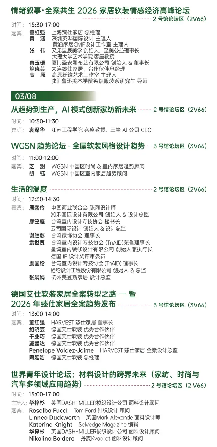🎨 灵感与思想:40+场高端论坛,汇聚Tom Ford主设计师、Kvadrat顾问、WGSN专家等国际大咖,聆听前沿设计哲学,激发跨界的创意火花,突破思维定式。