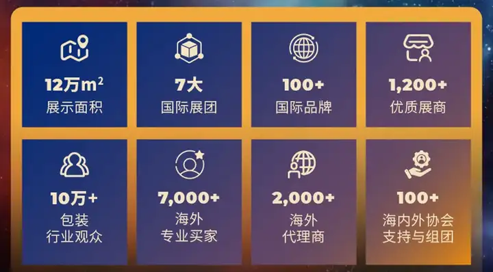 展品范围:纸包装、塑料包装、玻璃包装、金属包装、包装服务、自动化包装机械设备、包装材料及配件、智能包装及相关材料配件