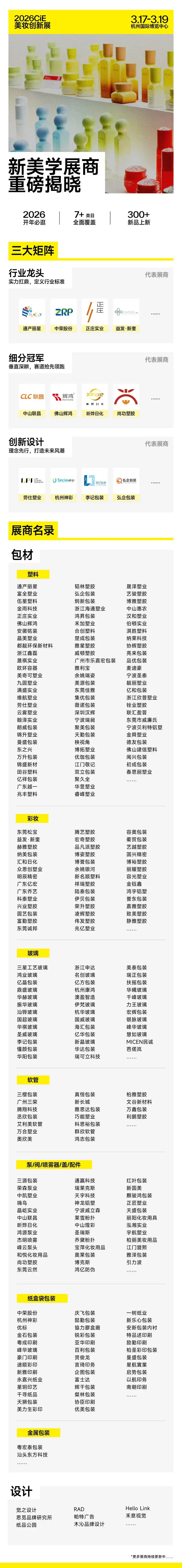 2026 CiE 美妆创新展,将于3月17-19日在杭州国际博览中心盛大启幕!本届展会以 “连接” 为年度主题,汇聚90000㎡展区、1000+优质展商、40000+专业观众,集结新国货、进口品、包装设计、OEM/ODM、创新原料等全产业链资源,更有12场新品发布会、趋势发布、渠道对接、行业盛典等重磅活动同步登场。为方便大家高效逛展,我们整理了超全逛展指南,共赴美妆创新盛宴!