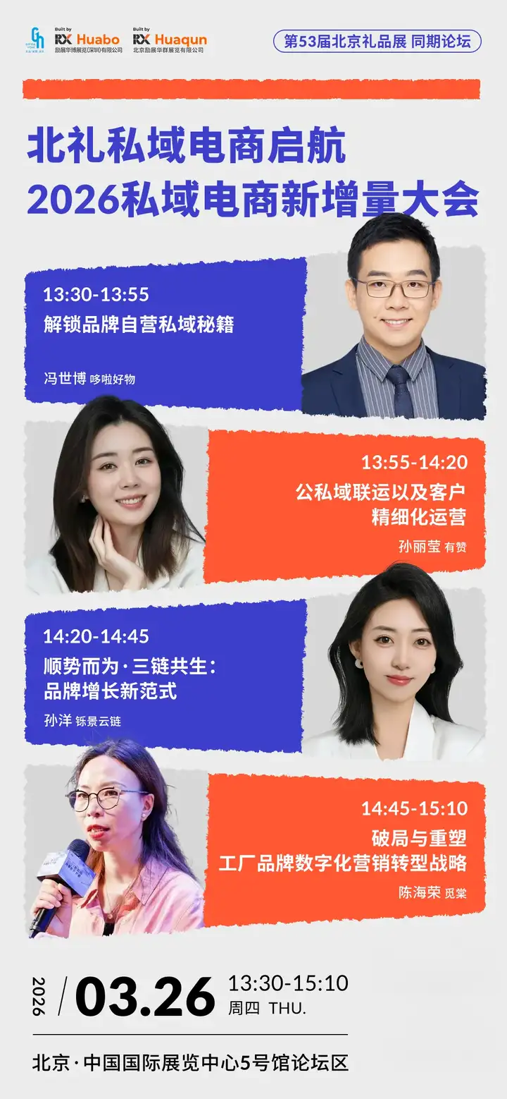 本场大会聚焦2026年私域电商新趋势,拆解私域最新玩法及技巧,分享礼品行业公、私域运营的成功案例,教你如何沉淀私域资产,挖掘私域新增量,实现业绩持续突破,契合礼业数字化全链路升级的发展需求。
