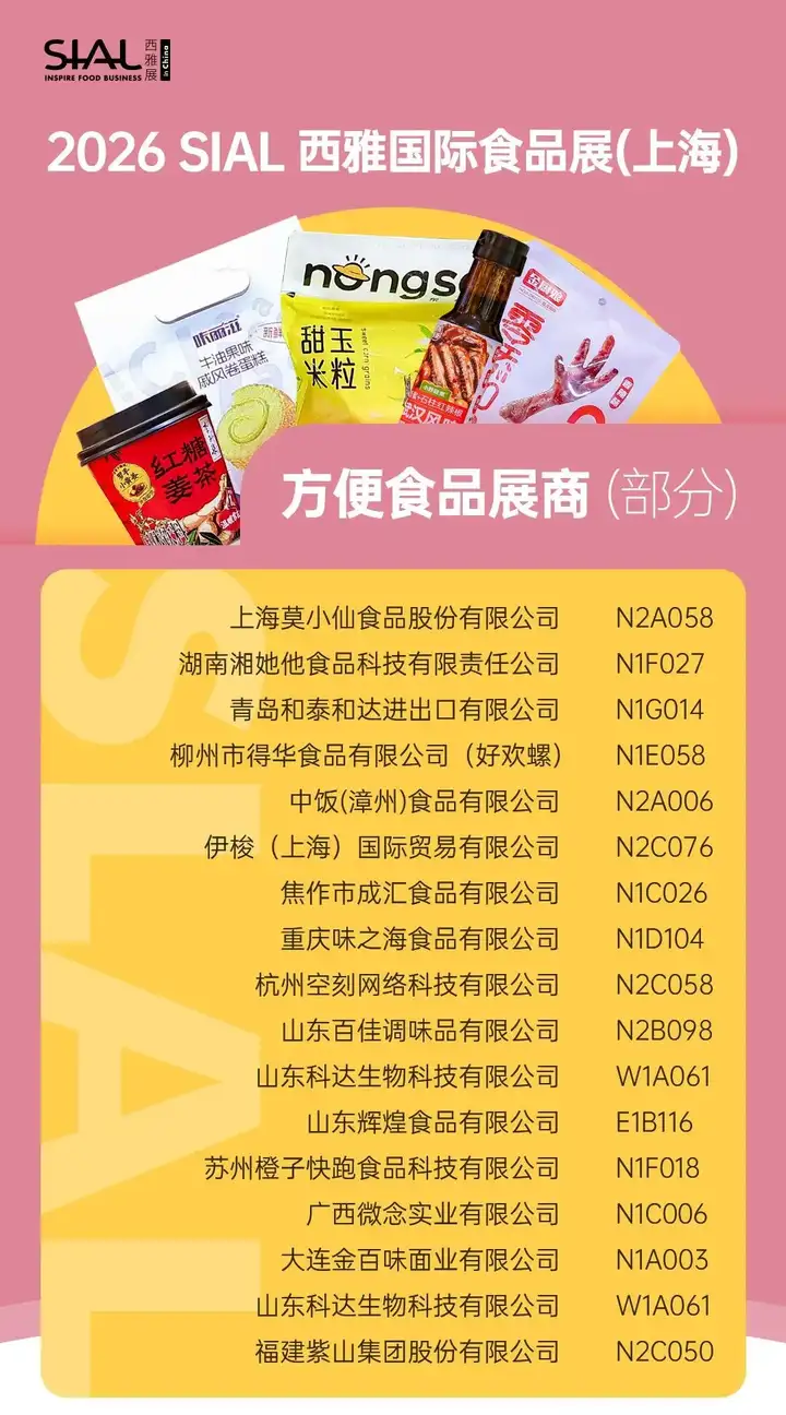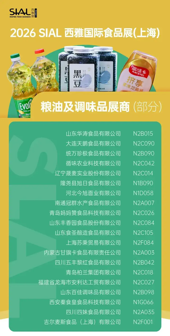- 高端饮品及新茶饮(抓住年轻人):汇集健康原料与潮流饮品,现场更有SIAL茶饮调配师大赛,带您洞察2026年一手饮品配方趋势。