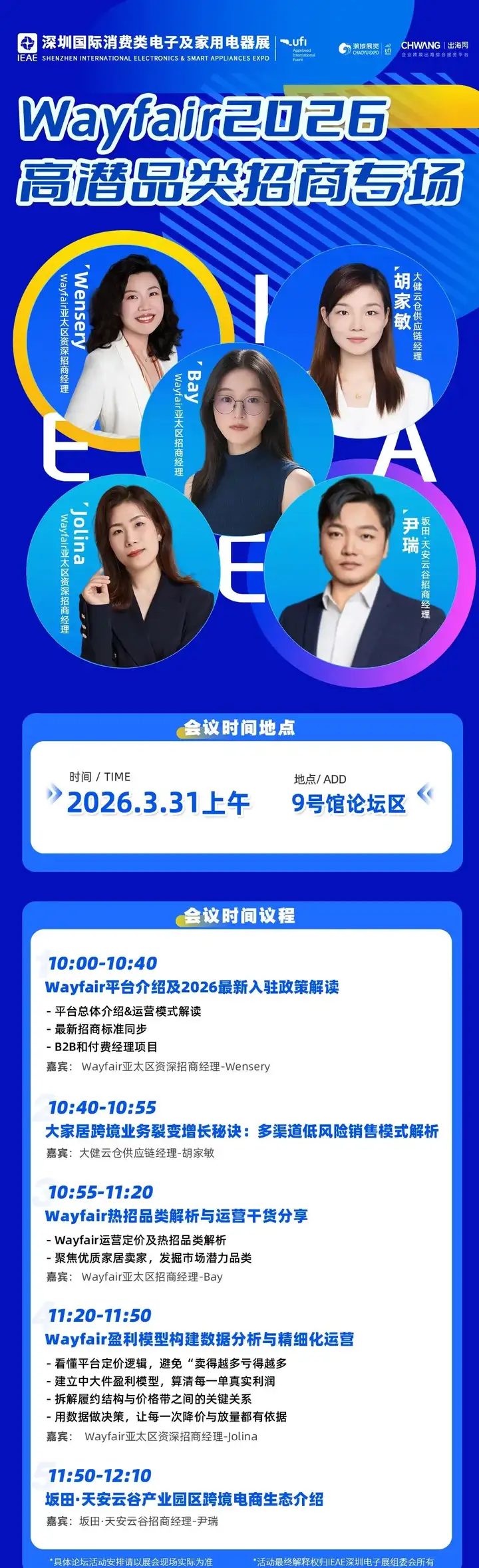 本届展会现场深度策划消费类电子、智能家电创新及跨境私模出海发布会三大核心板块,同期奉上近10场高密度主题论坛!