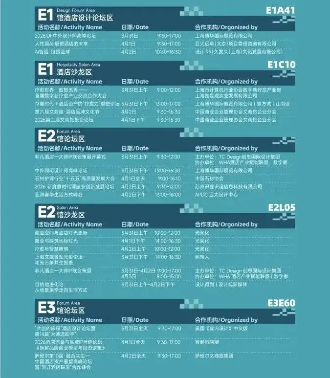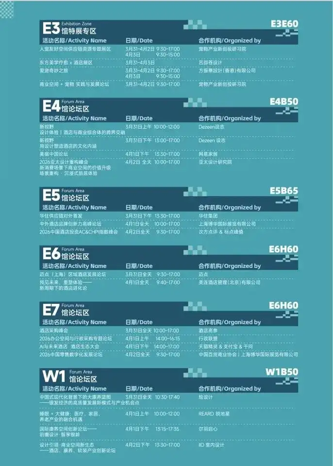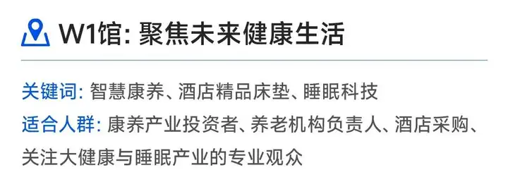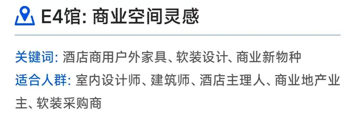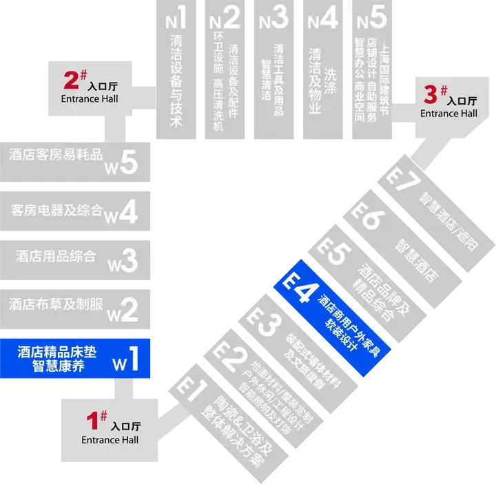 位于W1&E4馆的上海国际酒店家具、商用定制及软装设计展览会涵盖四大核心品类:酒店商用及户外家具、睡眠精品、智慧康养、软装设计。