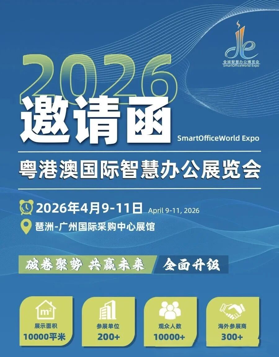 2026 粤港澳国际智慧办公展览会,将于4月9-11日登陆广州国际采购中心,打造粤港澳大湾区智慧办公行业年度盛会。4月9日同期举办 OffiSmart 粤港澳国际智慧办公论坛,集结前沿技术、优质展商与专业观众,共启办公数字化新篇章。