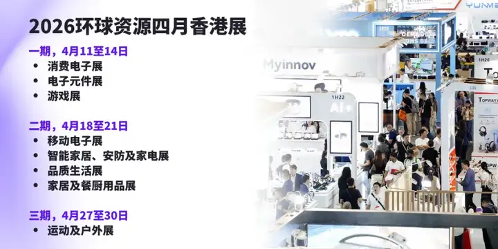 在全球贸易采购逻辑日趋复杂的今天,单纯的商品交易已升级为对趋势预判、技术协同与供应链韧性的综合较量。2026年4月11日-30日,环球资源香港展将在亚洲国际博览馆分三期盛大启幕,全面覆盖游戏、消费电子、电子元件、移动电子、智能家居、安防及家电、家居餐厨、品质生活、运动户外等高增长采购品类,汇聚海量优质供应商与前沿新品,为全球买家搭建起一条从趋势洞察到精准对接的全链条采购新通道。