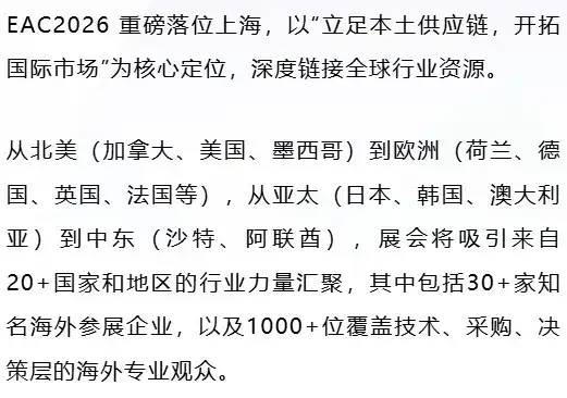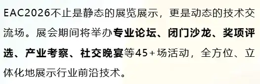 为什么一定要来EAC2026?作为深耕行业26年的B2B技术与供应链服务专家,易贸倾力打造EAC2026,以“AI赋能·生态创新”为主题,5大参与价值为观众带来全方位、高品质的逛展体验: