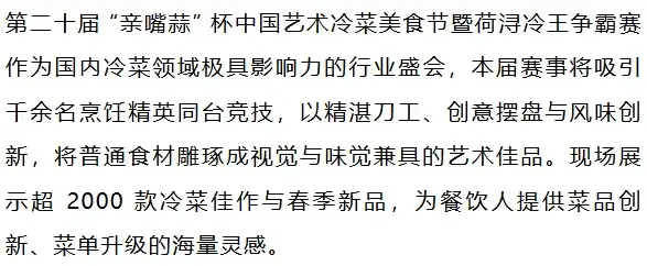 权威峰会+巅峰赛事,助力凉菜创新与产业全面升级