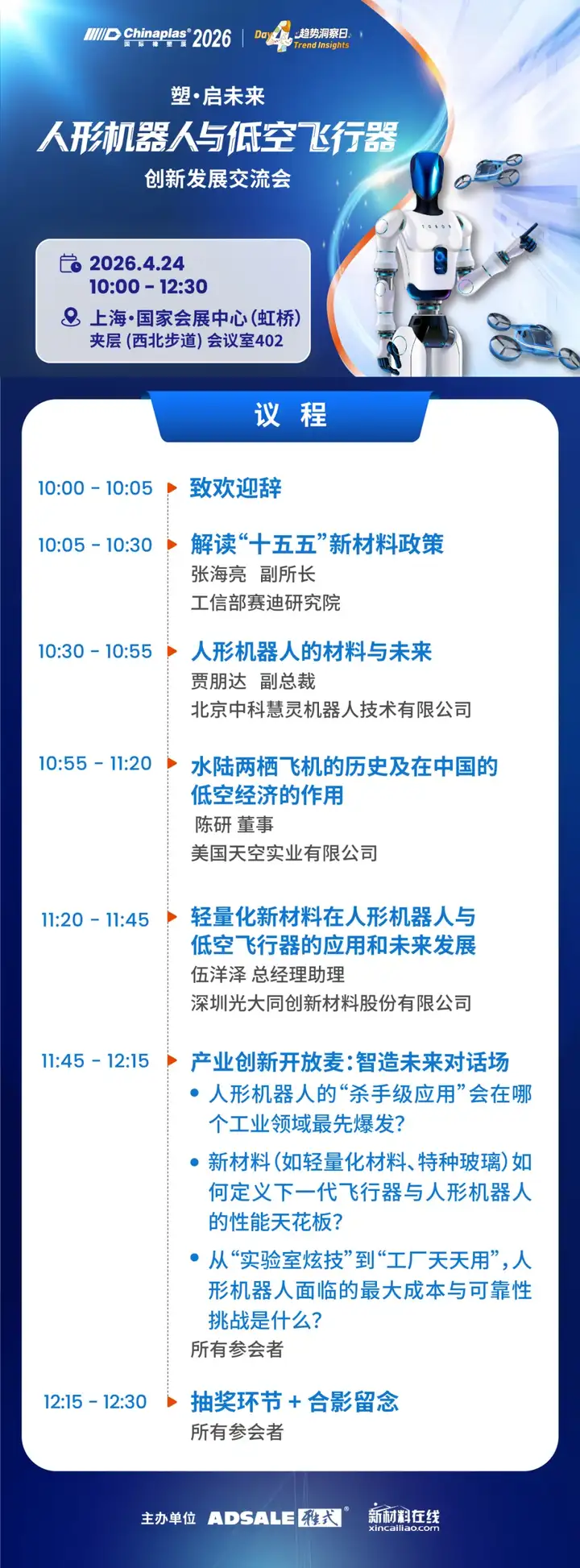 2. 塑·启未来:人形机器人与低空飞行器创新发展交流会,深入探索新兴产业中的橡塑核心技术。