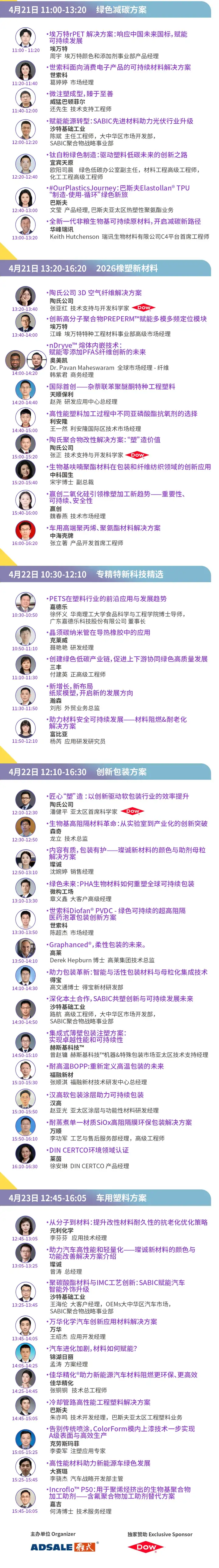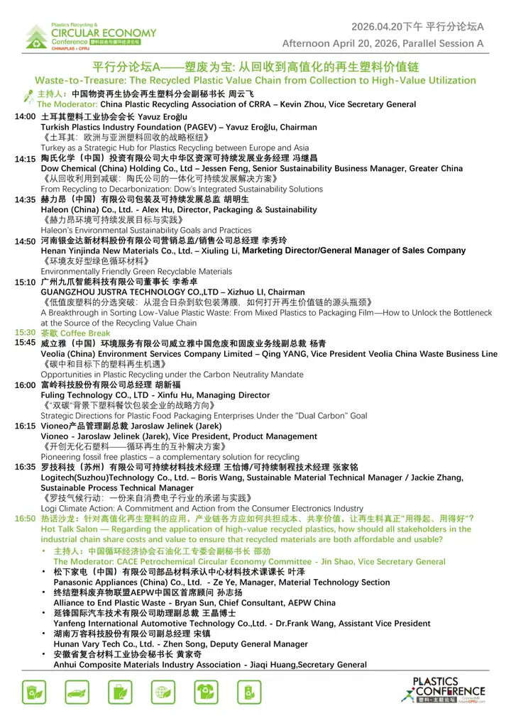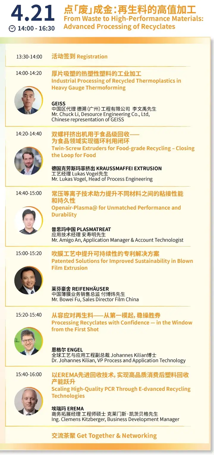 会议设置70余场热点话题分享与主题采访,聚焦塑料循环经济中的全球政策走向、低碳消费、全周期绿色供应链体系、再生材料的高值化未来等。