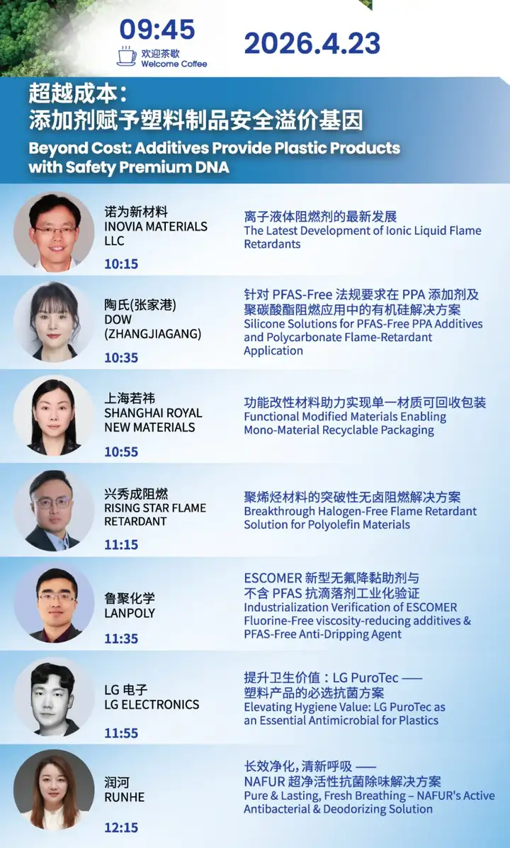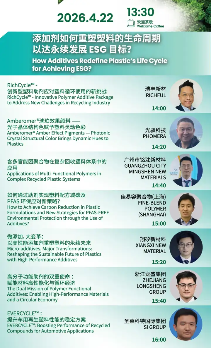 “添加剂研讨会:成就可持续及优质塑料”,将聚焦高增值方案,助力企业突破成本与合规瓶颈,以创新添加剂助力ESG目标达成、提升产品安全与竞争力。