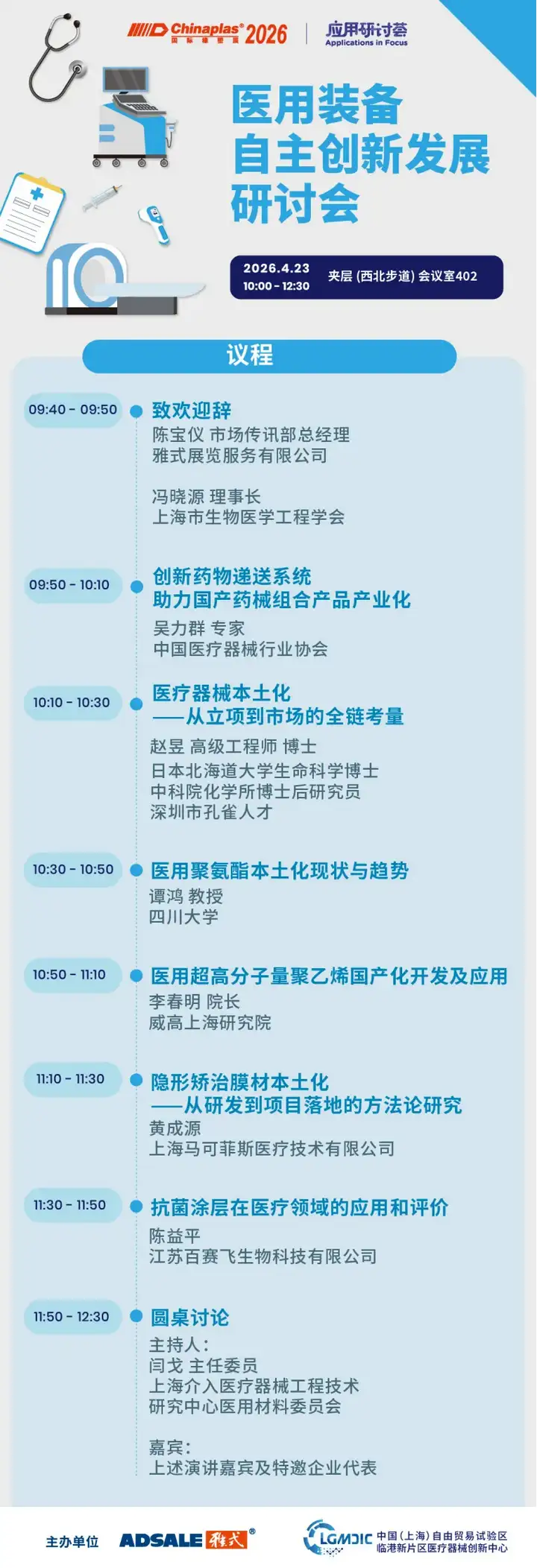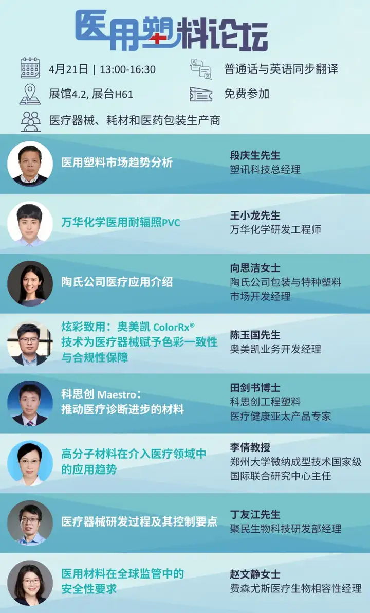 “医用塑料论坛”集合奥美凯、陶氏、科思创、万华等领军企业,带来含金量极高的技术介绍,探索加速医疗创新落地的解决方案。