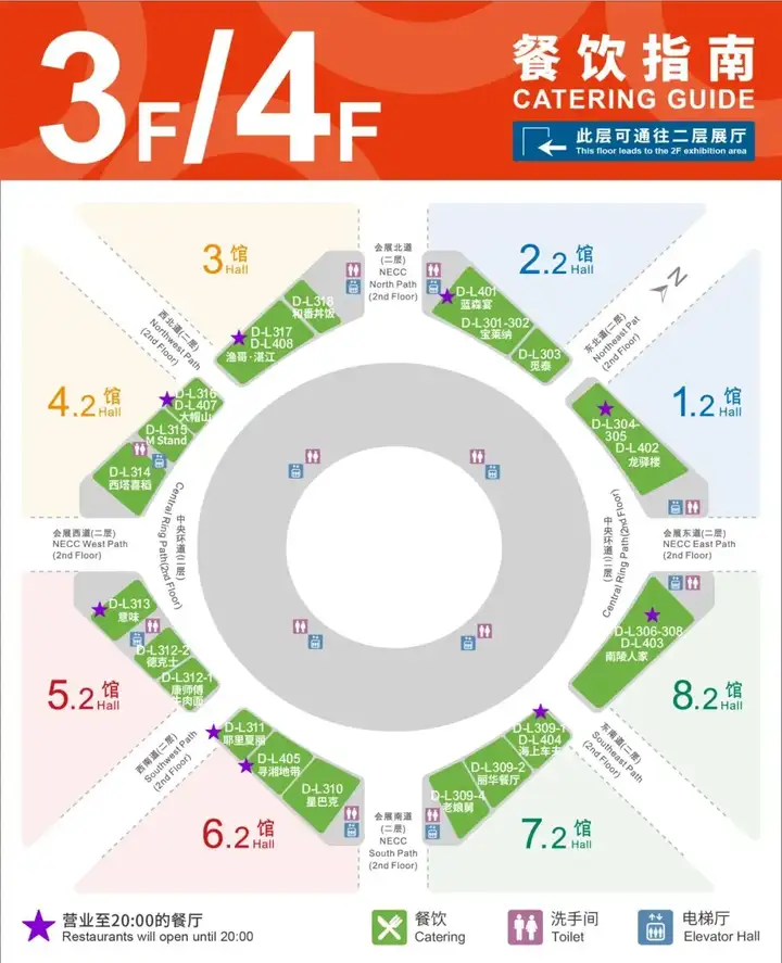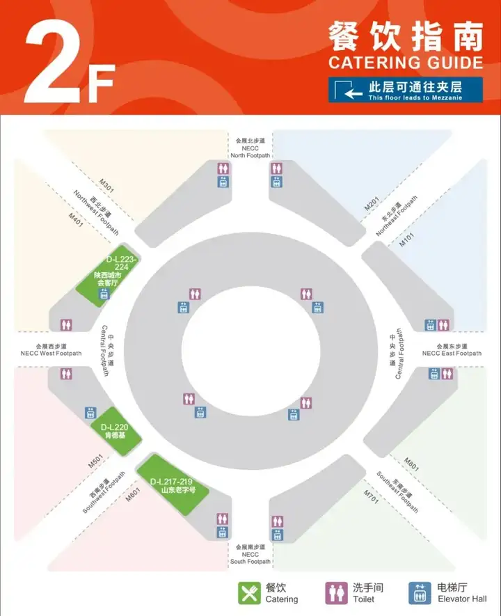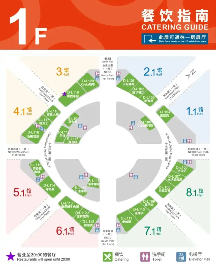 展馆商业广场,一层至四层均设有餐饮区。中西餐、清真餐、咖啡茶饮、特色小吃…一步到“胃”~