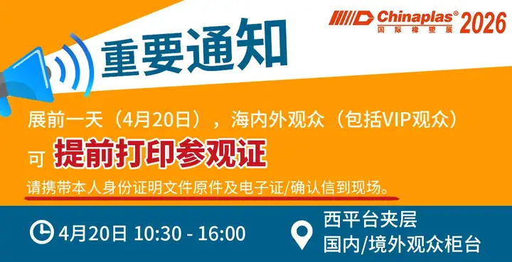 橡塑行业年度盛会来袭!CHINAPLAS 2026 国际橡塑展,将于4月21-24日在上海·国家会展中心(虹桥)隆重举办。新材料、新设备、新技术、新应用集中亮相,全球客商齐聚一堂。想不错过任何亮点,轻松玩转展会?这份超全逛展指南,您一定要收好。