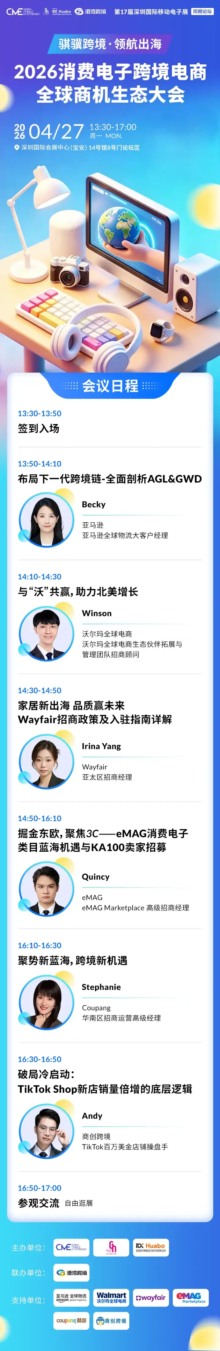 核心价值:聚焦主流跨境平台政策与消费电子出海新机遇,打通产业带与全球市场的对接通道。