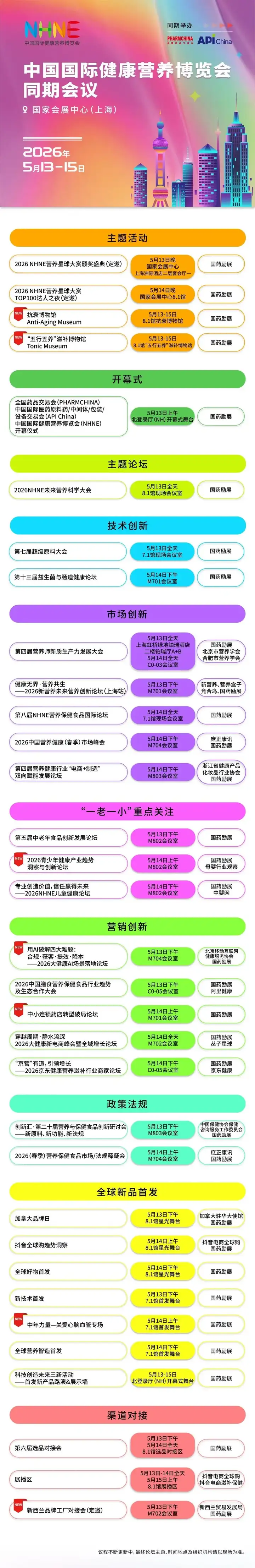 抢先锁定2026年度健康营养行业顶级盛宴!中国国际健康营养博览会(NHNE),将于5月13-15日在上海・国家会展中心隆重举办。首批展商列表与重磅会议论坛已正式首发,九大创新亮点直击行业痛点与未来风口,为品牌展示、渠道对接、趋势研判提供绝佳机遇,诚邀海内外客商共赴盛会,共谋健康营养产业新未来。
