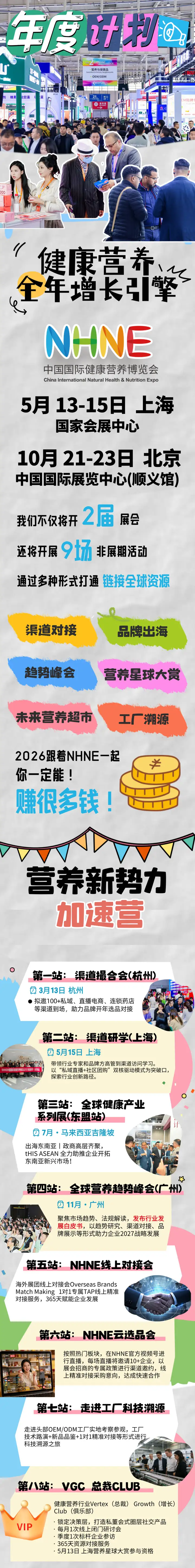 NHNE正从传统的线下展会平台,升级为覆盖全产业链、贯穿全年的行业生态圈——以“展+会+平台+活动”四维一体的服务矩阵,NHNE全新推出行业大众点评“VITA榜单”将建立月度新品发布机制——月度精选新品将通过NHNE官方矩阵持续曝光,为健康营养企业打造365天不间断的赋能体系。