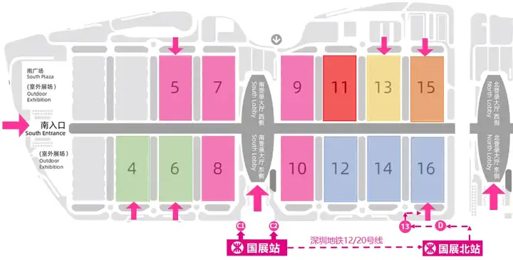 地铁:乘坐深圳地铁12/20号线前往国展站C出口或国展北站D出口。