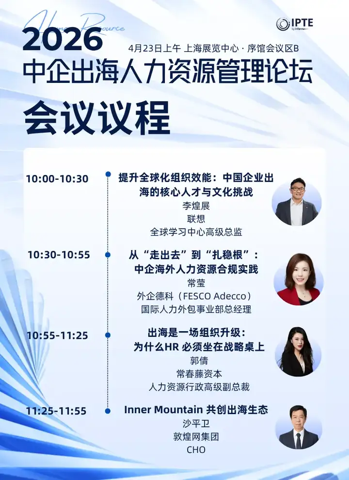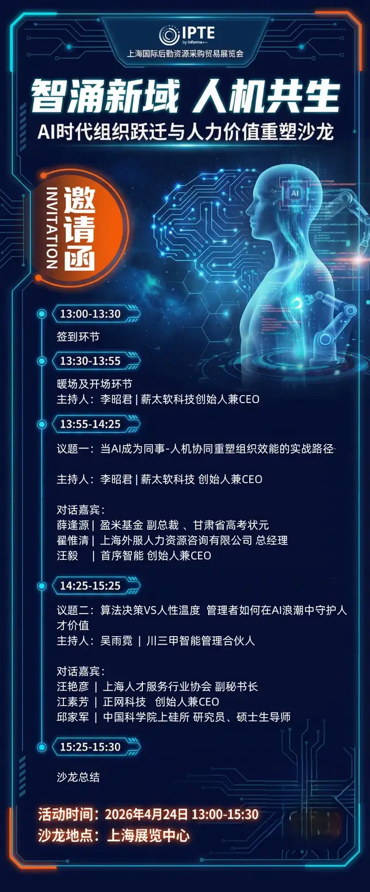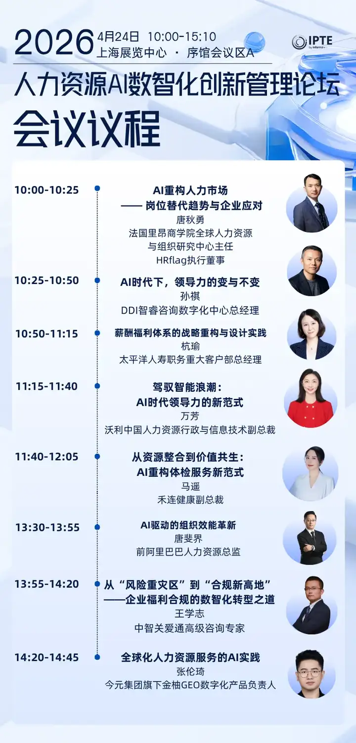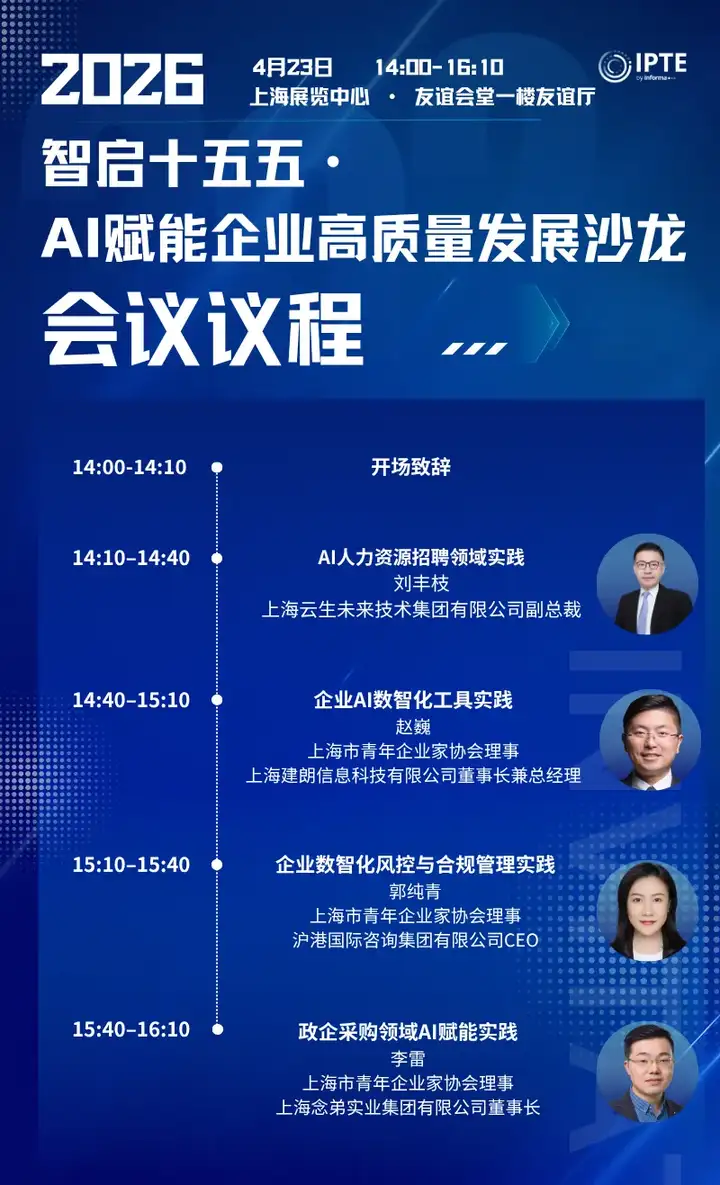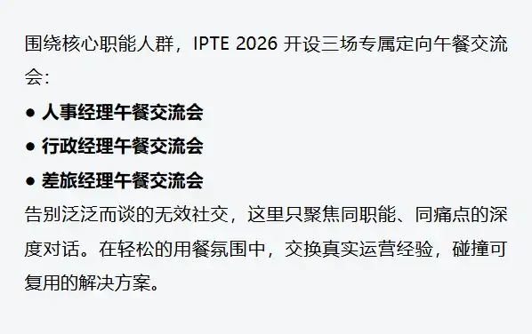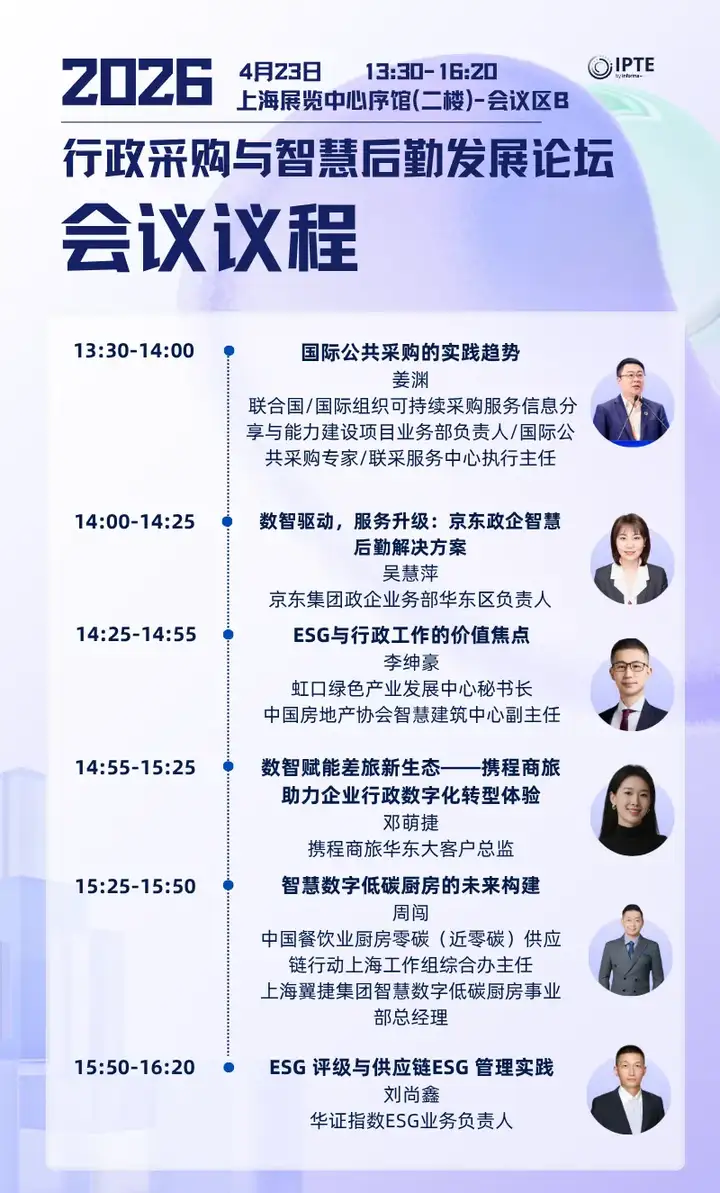 从人才管理到资产配置,从费用管控到数智升级,企业运营的每一次突破,都离不开专业平台的支撑。IPTE 2026 将于4月23-24日在上海展览中心盛大举办,诚邀各位管理者、采购负责人莅临现场,共谋发展、共话机遇,携手打造更具韧性的企业未来。