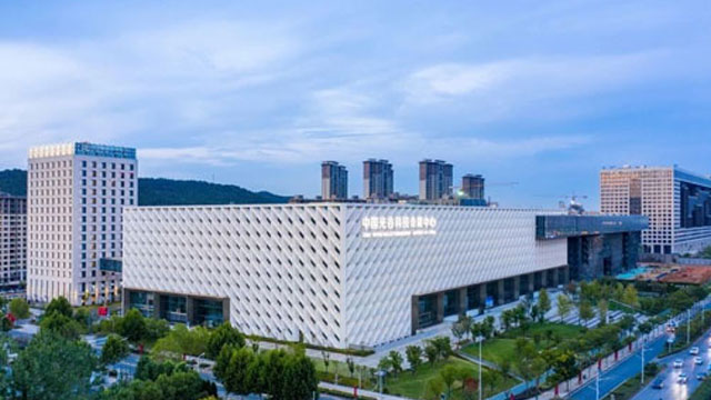 会展中心整体由钢结构、金属格栅和玻璃幕墙完美构成,不同材质散发的魅力相互辉映融合。白天看大气恢弘,夜间在灯光照耀点缀下,通体玲珑剔透,犹如在天地间舞动的“光立方”。