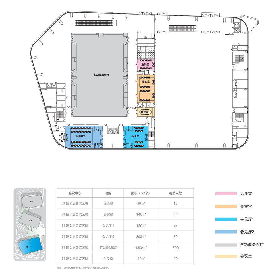 株洲国际会展中心E1馆二楼,依据就近原则,合理布局多功能会议厅、会见厅、贵宾室、洽谈室、会议室等设施。这些空间功能全面,场地宽敞且极具舒适感,内部设施灵活可变,能够满足各类型、规模及等级的会议和活动需求。中心致力于提供完善且专业的会务设施,为各类会议和活动提供个性化服务,同时满足展览(包括室内和室外场地)与会议之间的协同使用需求。