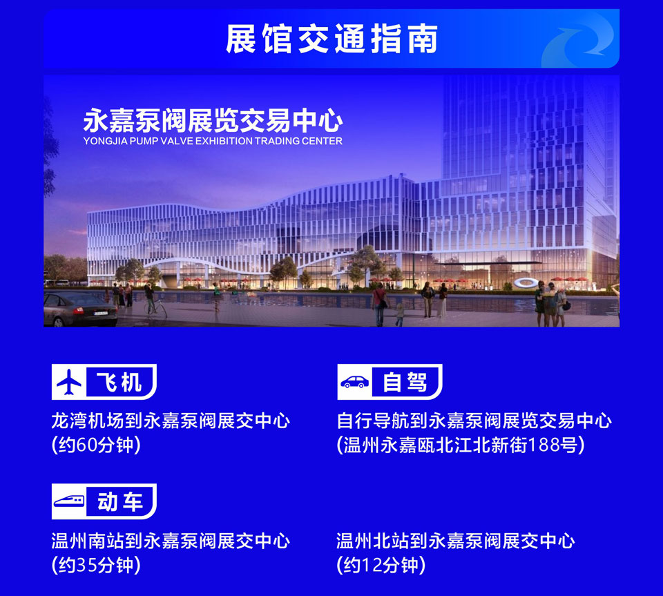 中国泵阀展览交易中心(浙江温州永嘉瓯北江北新街188号)